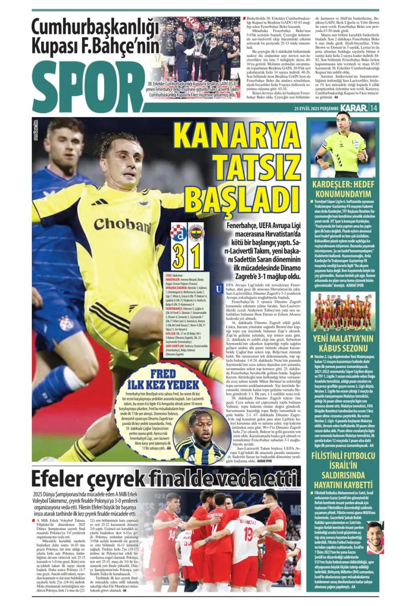 25 Eylül 2025 – Gazetelerde FENERBAHÇE