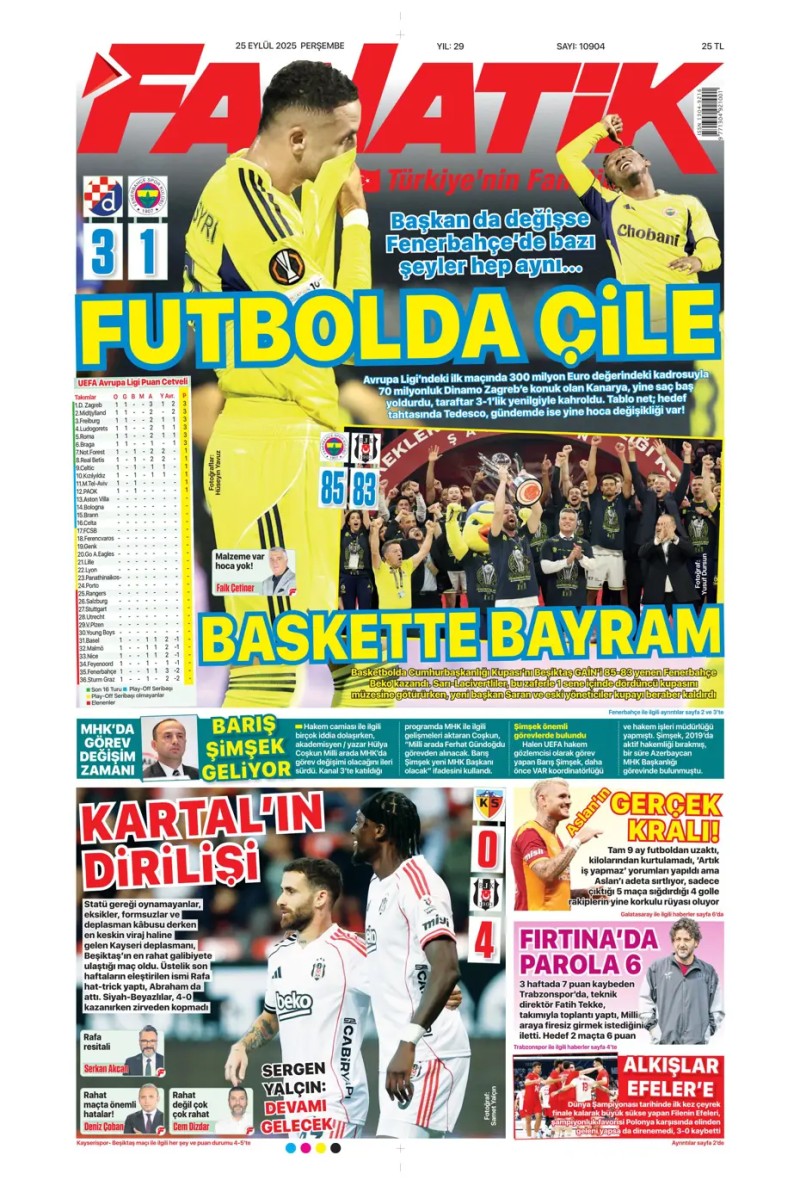 25 Eylül 2025 – Gazetelerde FENERBAHÇE