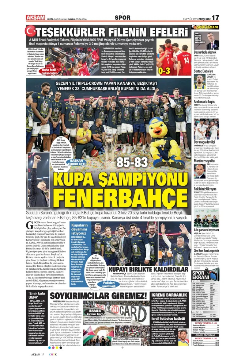 25 Eylül 2025 – Gazetelerde FENERBAHÇE