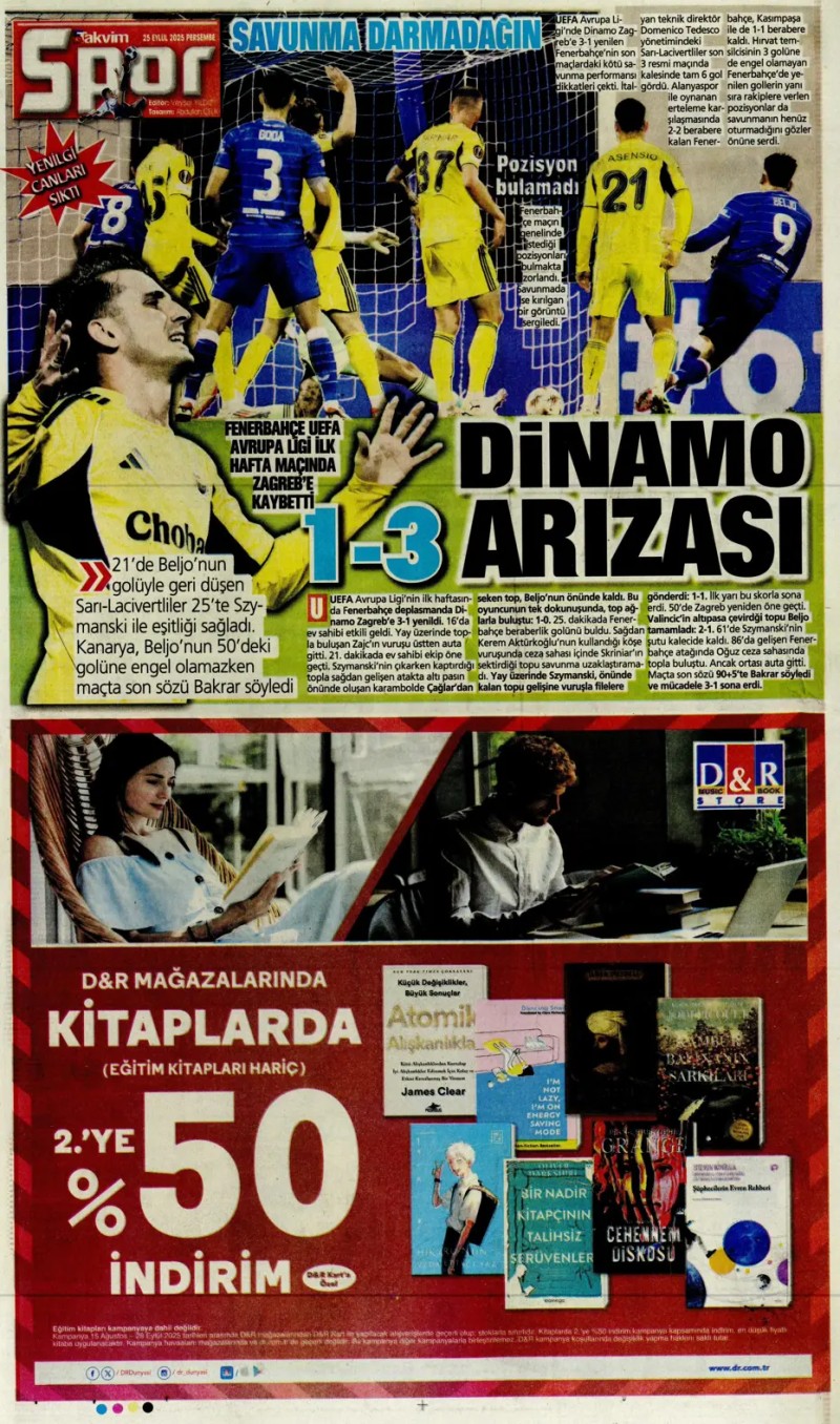 25 Eylül 2025 – Gazetelerde FENERBAHÇE