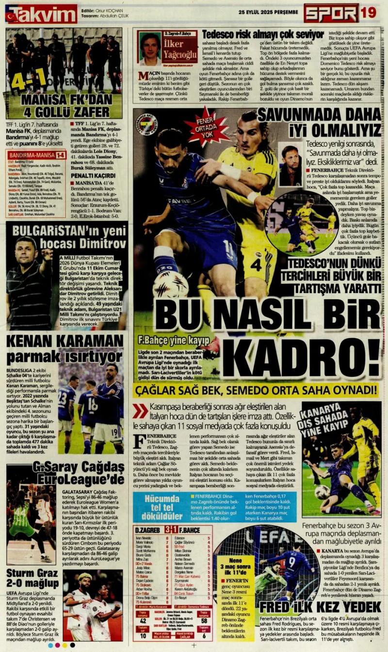 25 Eylül 2025 – Gazetelerde FENERBAHÇE