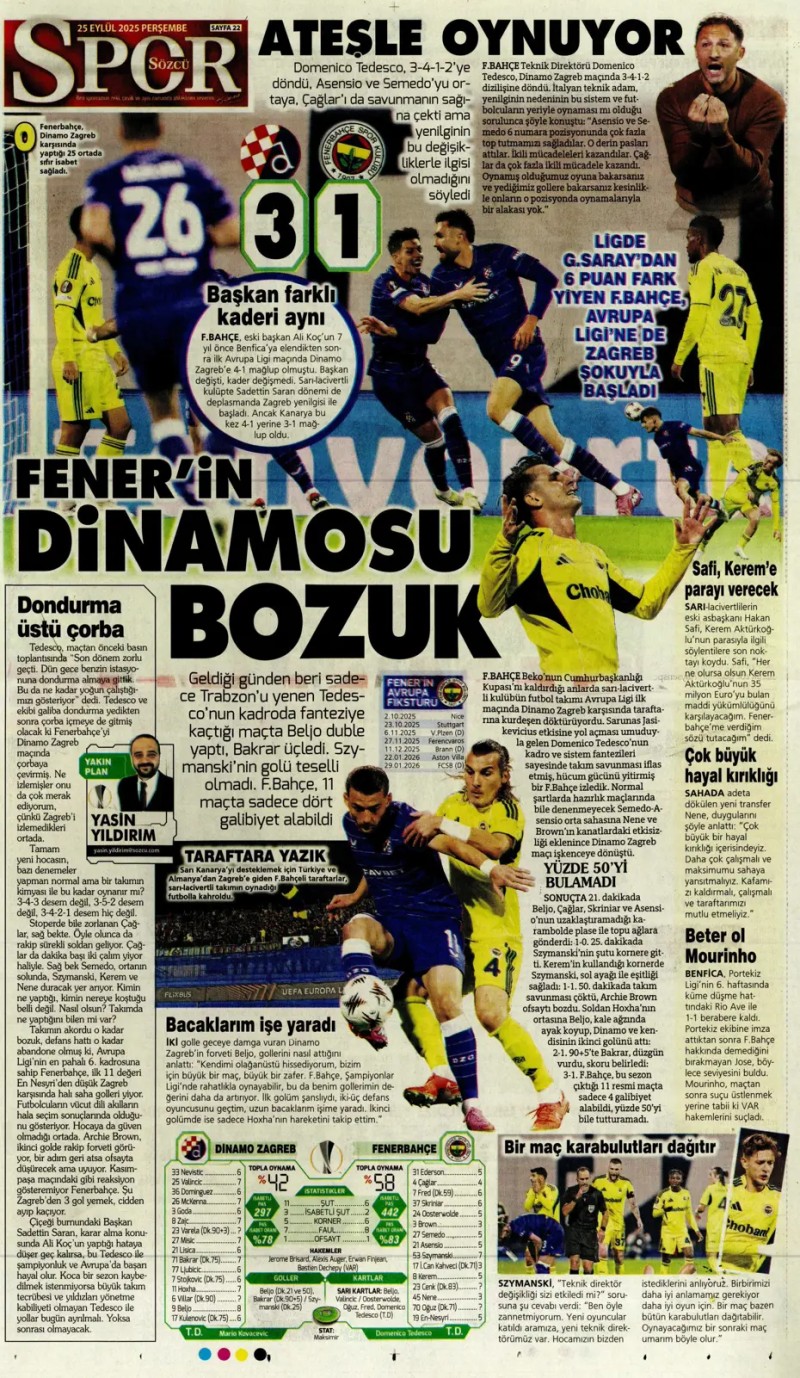 25 Eylül 2025 – Gazetelerde FENERBAHÇE