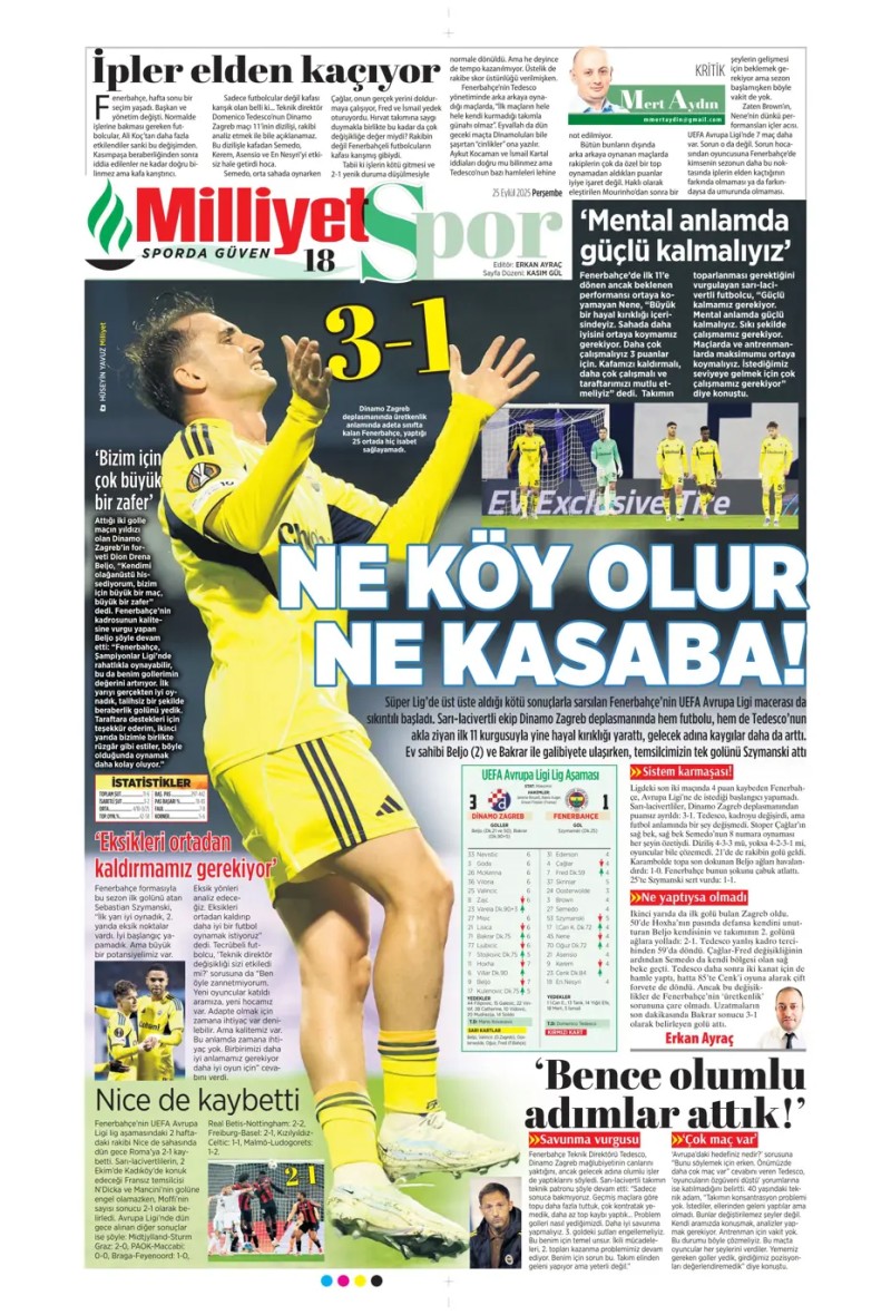 25 Eylül 2025 – Gazetelerde FENERBAHÇE