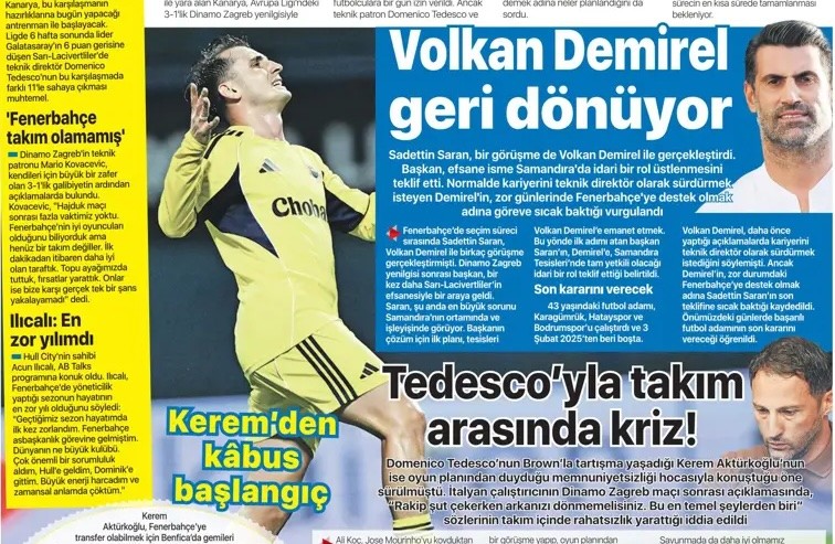 26 Eylül 2025 – Gazetelerde FENERBAHÇE