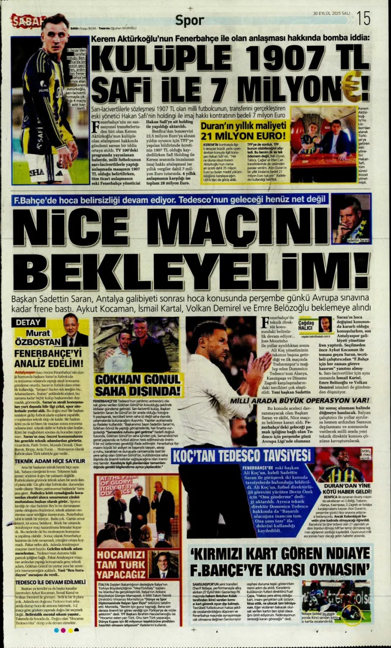 30 Eylül 2025 – Gazetelerde FENERBAHÇE