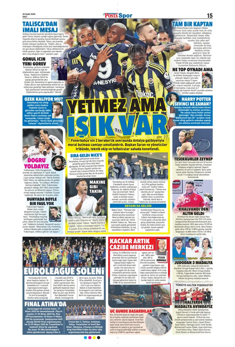 30 Eylül 2025 – Gazetelerde FENERBAHÇE