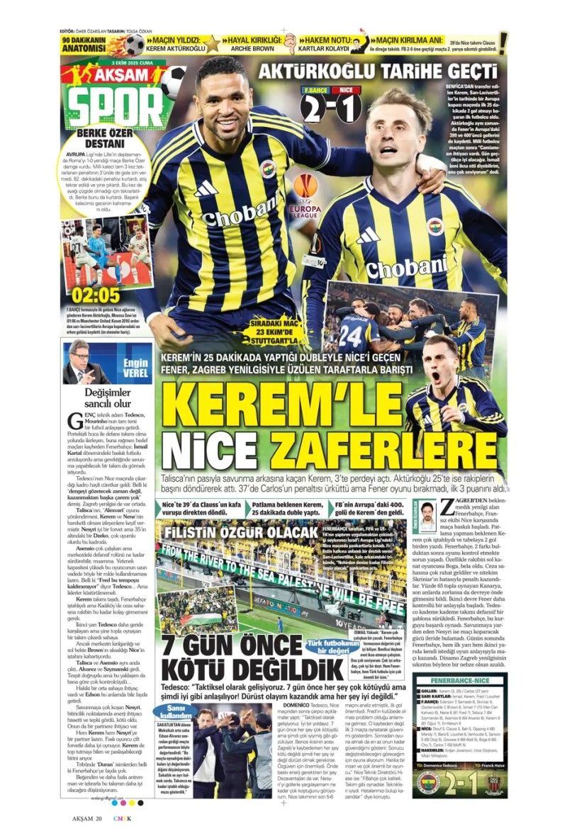 3 Ekim 2025 – Gazetelerde FENERBAHÇE