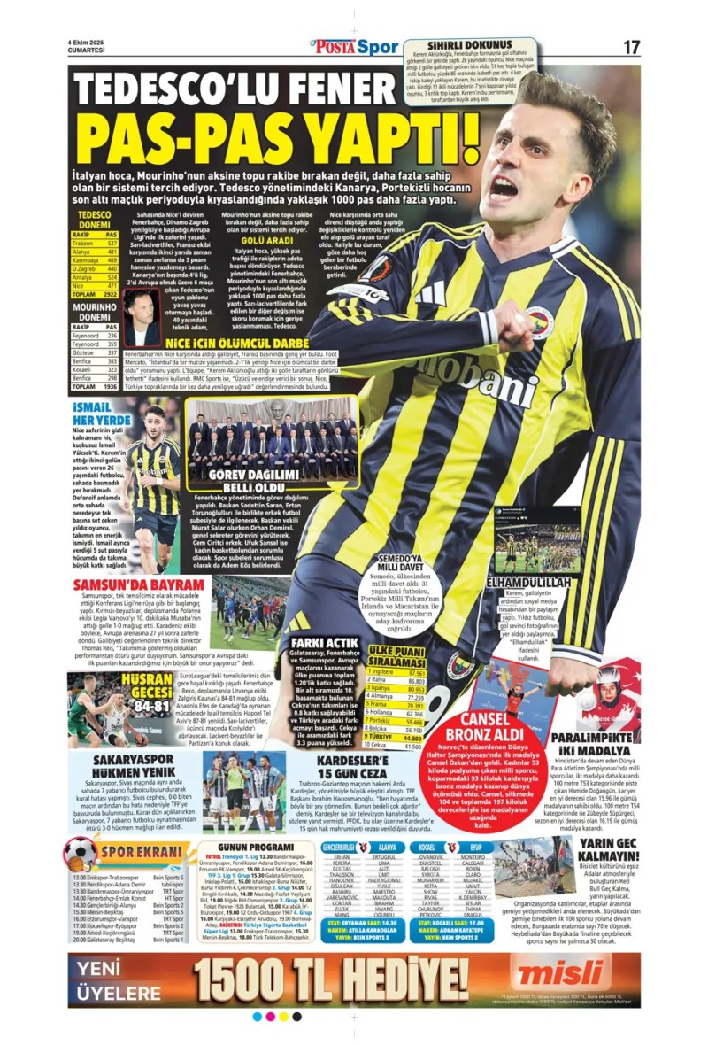 4 Ekim 2025 – Gazetelerde FENERBAHÇE