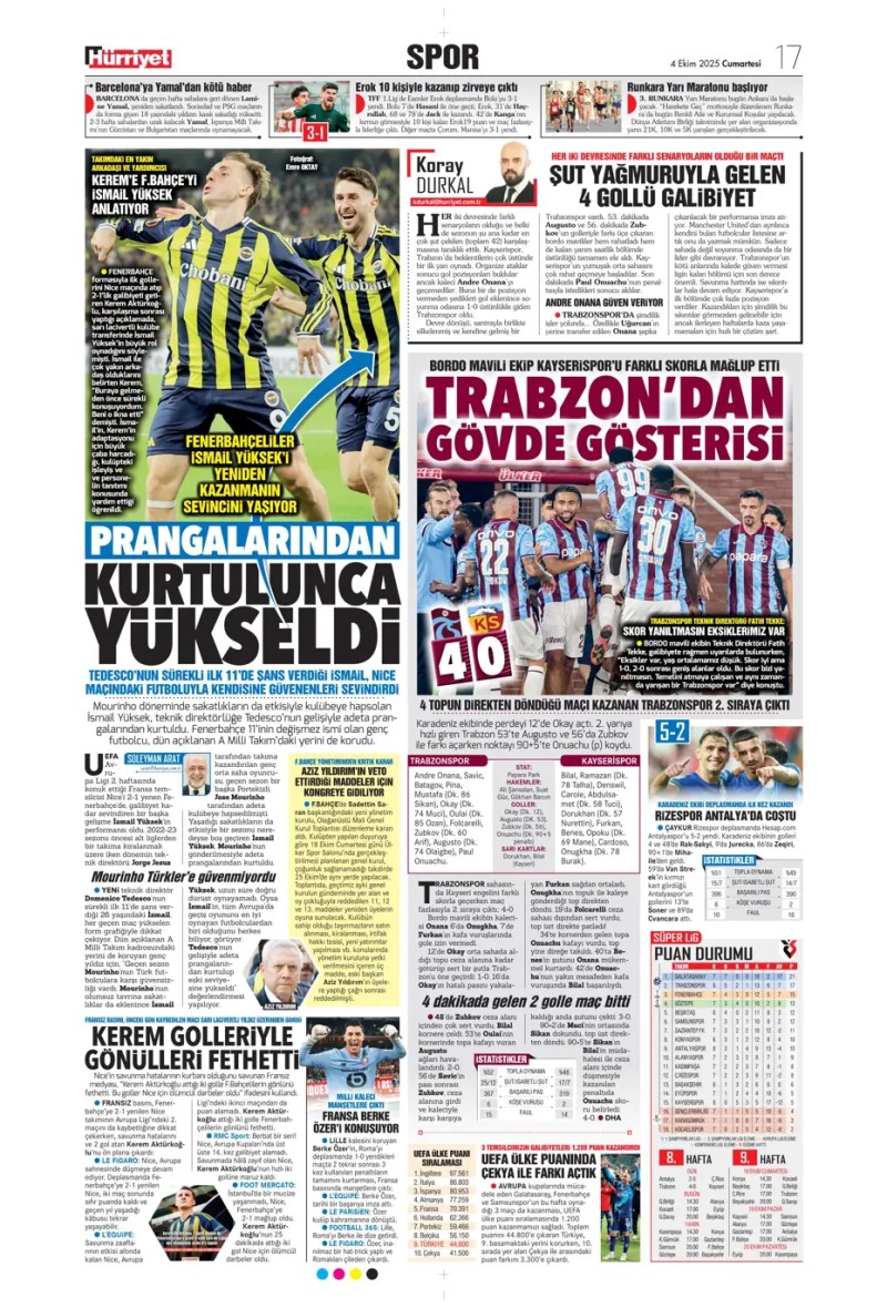 4 Ekim 2025 – Gazetelerde FENERBAHÇE
