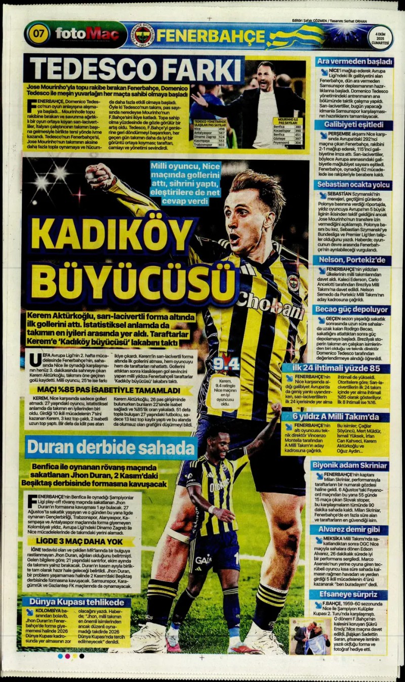 4 Ekim 2025 – Gazetelerde FENERBAHÇE