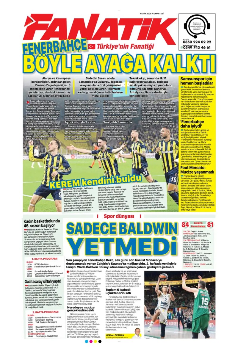 4 Ekim 2025 – Gazetelerde FENERBAHÇE