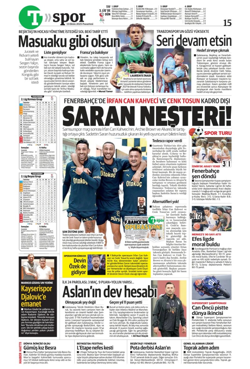 13 Ekim 2025 – Gazetelerde FENERBAHÇE