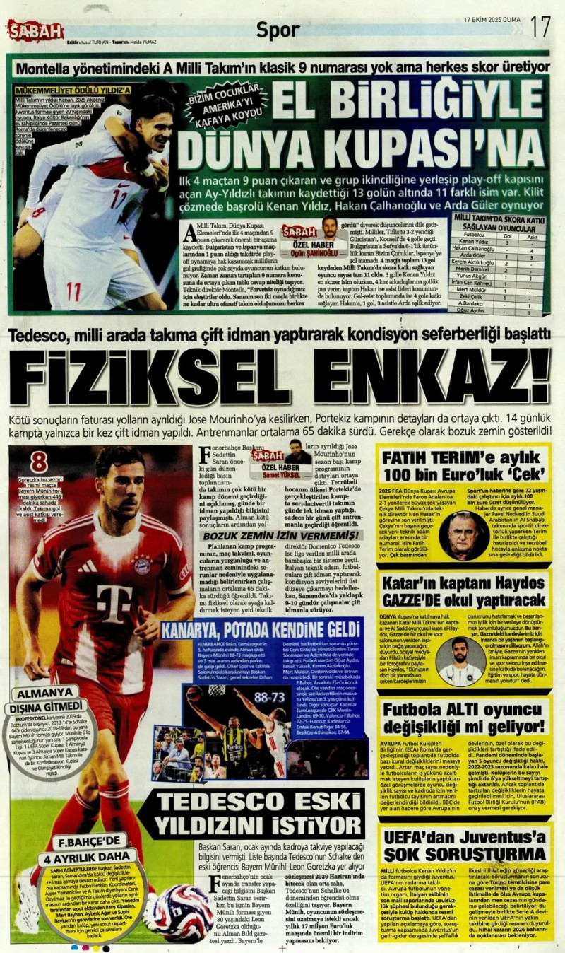 17 Ekim 2025 – Gazetelerde FENERBAHÇE