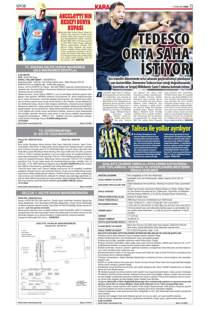 17 Ekim 2025 – Gazetelerde FENERBAHÇE