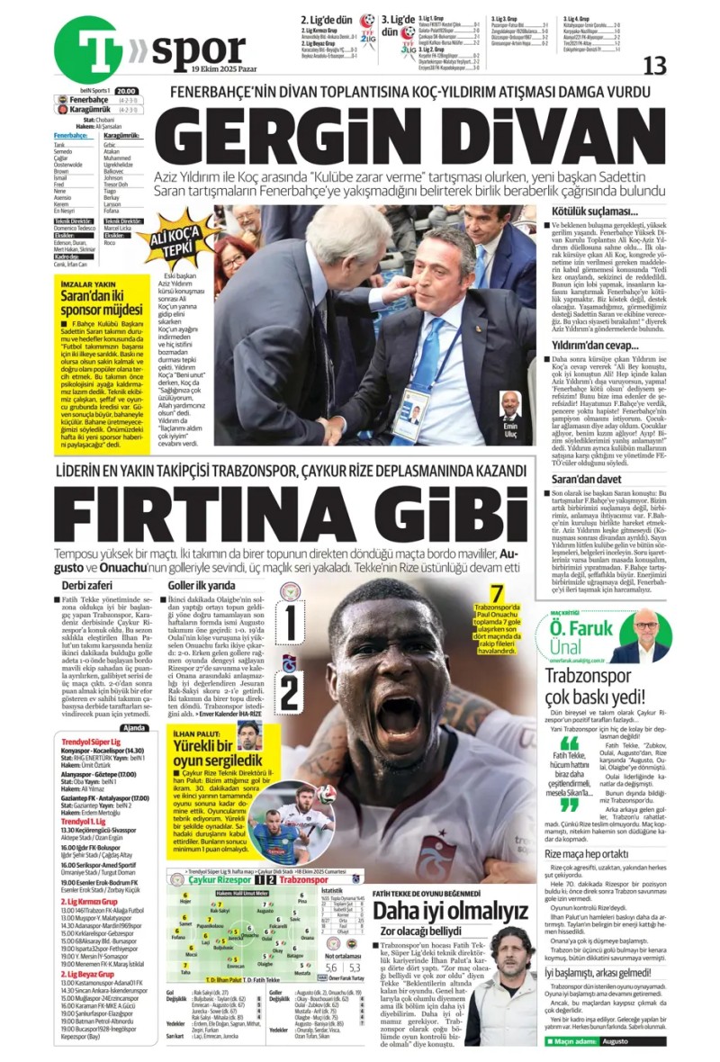 19 Ekim 2025 – Gazetelerde FENERBAHÇE