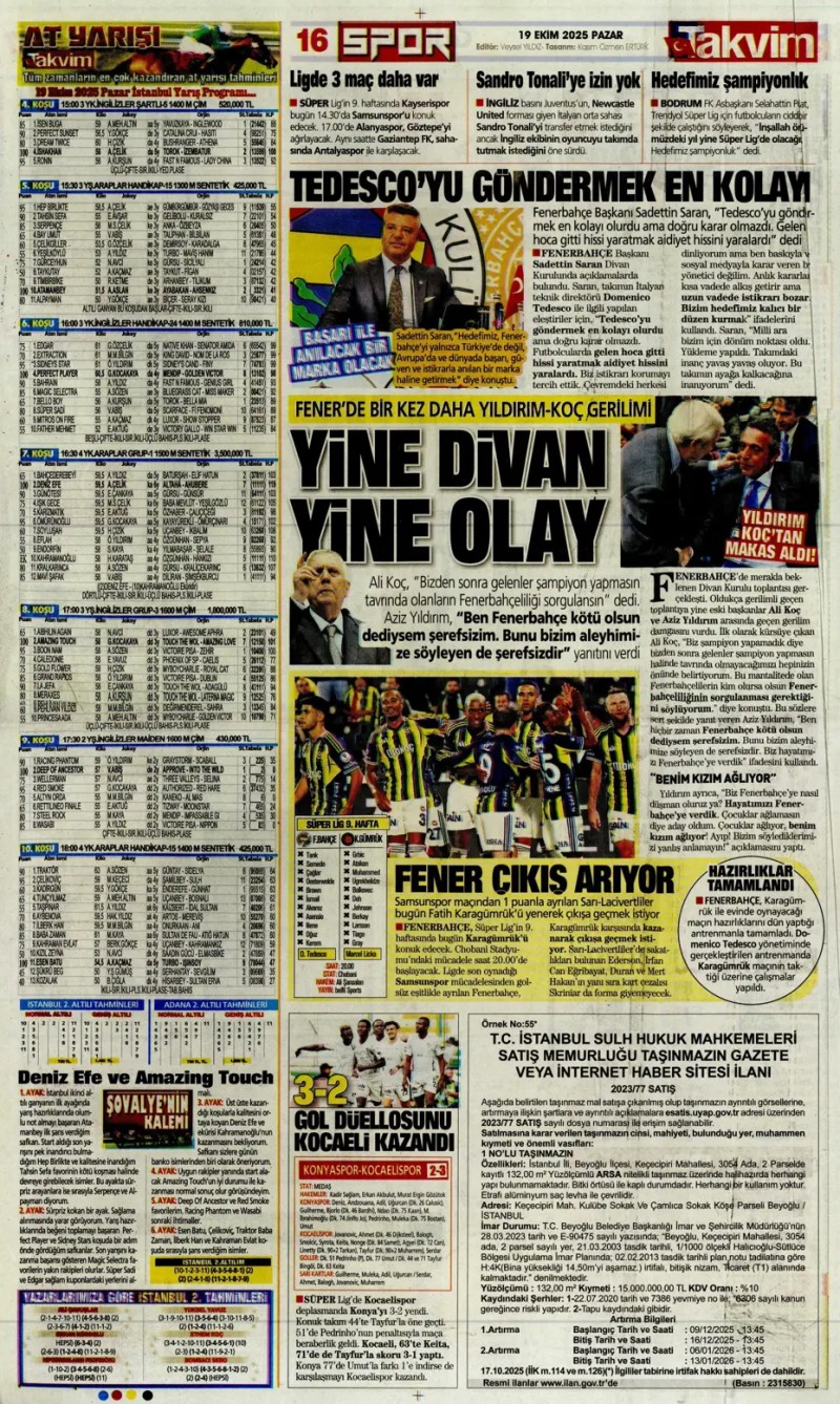 19 Ekim 2025 – Gazetelerde FENERBAHÇE