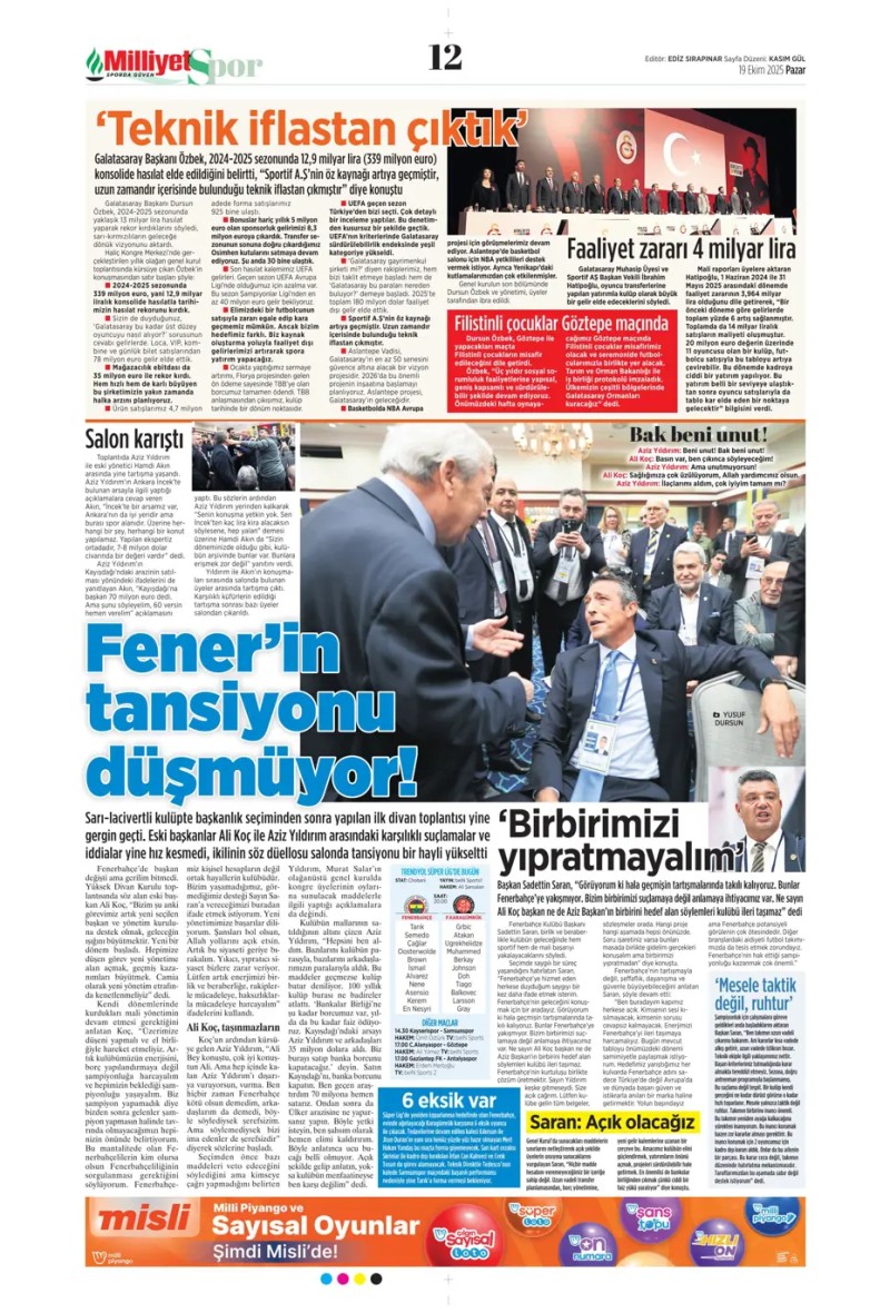 19 Ekim 2025 – Gazetelerde FENERBAHÇE