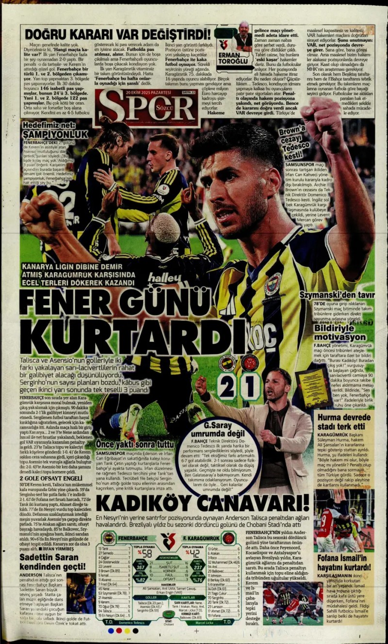 20 Ekim 2025 – Gazetelerde FENERBAHÇE