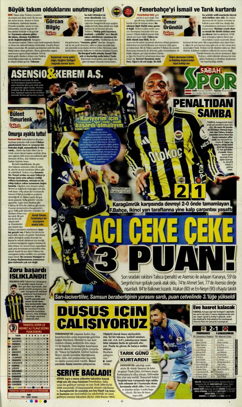 20 Ekim 2025 – Gazetelerde FENERBAHÇE