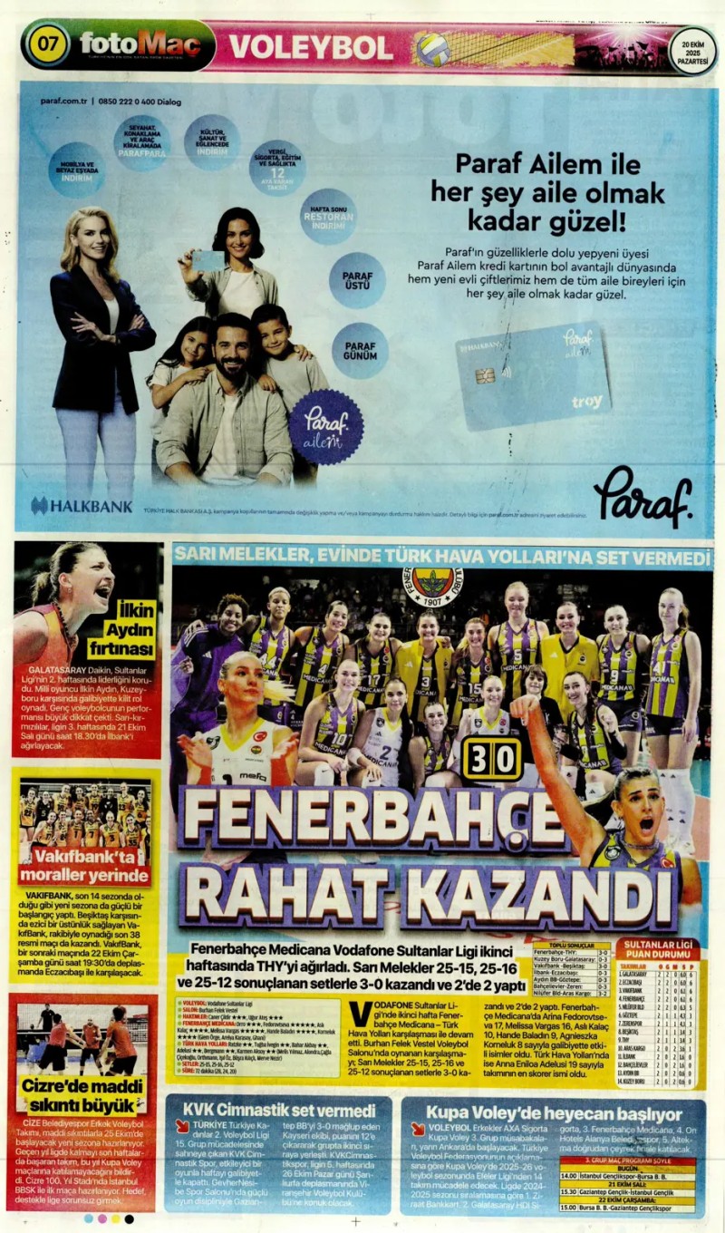 20 Ekim 2025 – Gazetelerde FENERBAHÇE