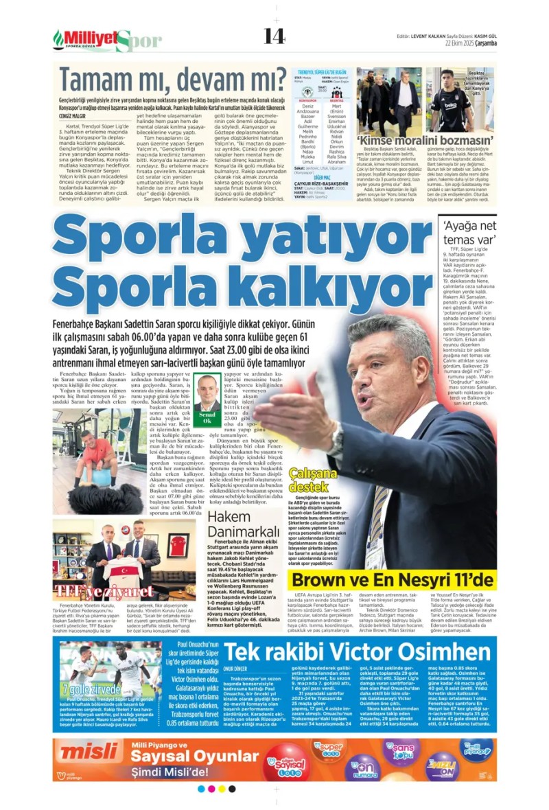 22 Ekim 2025 – Gazetelerde FENERBAHÇE