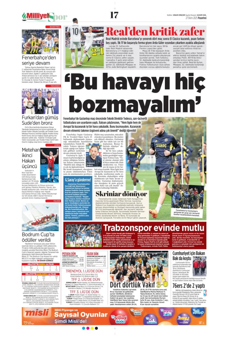 27 Ekim 2025 – Gazetelerde FENERBAHÇE