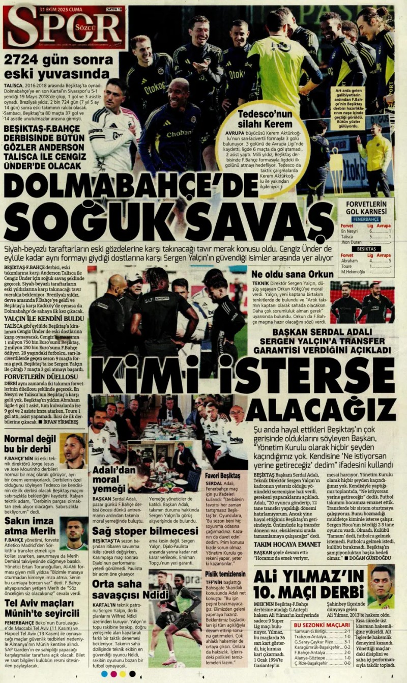 31 Ekim 2025 – Gazetelerde FENERBAHÇE
