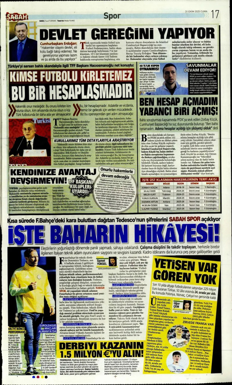 31 Ekim 2025 – Gazetelerde FENERBAHÇE