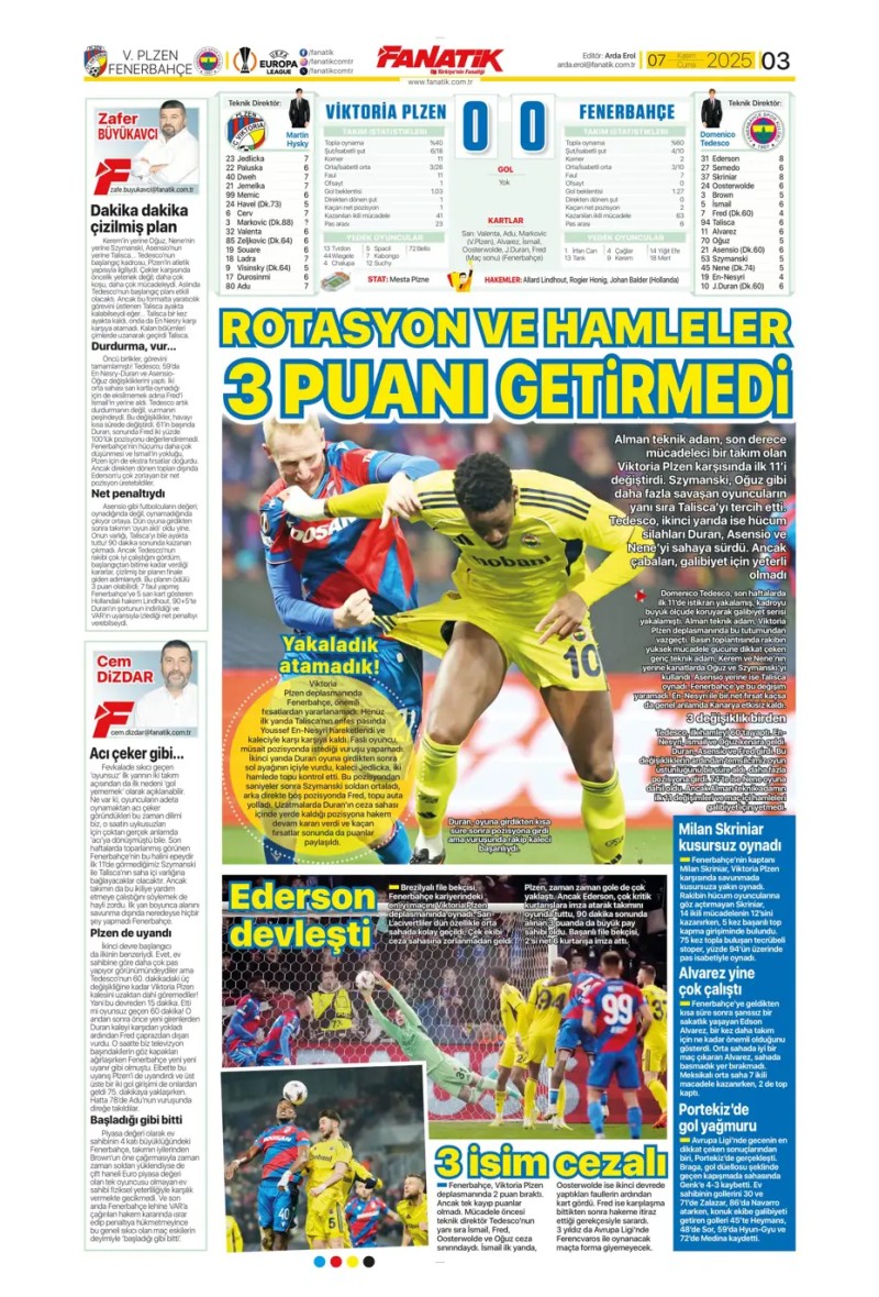 Bugün gazetelerde öne çıkan tüm FENERBAHÇE manşetlerine hızlıca göz atabilirsiniz! FENERBAHÇE manşetleri (7 Kasım 2025)