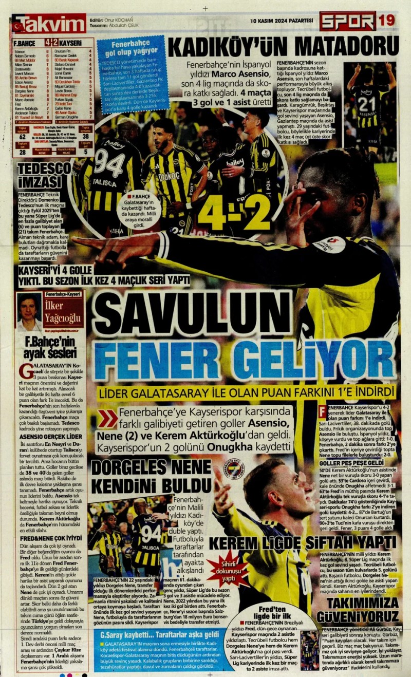 10 Kasım 2025 – Gazetelerde FENERBAHÇE