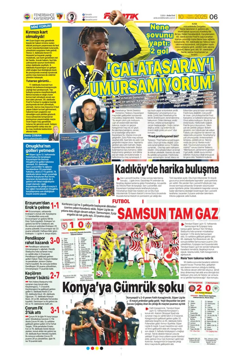 10 Kasım 2025 – Gazetelerde FENERBAHÇE