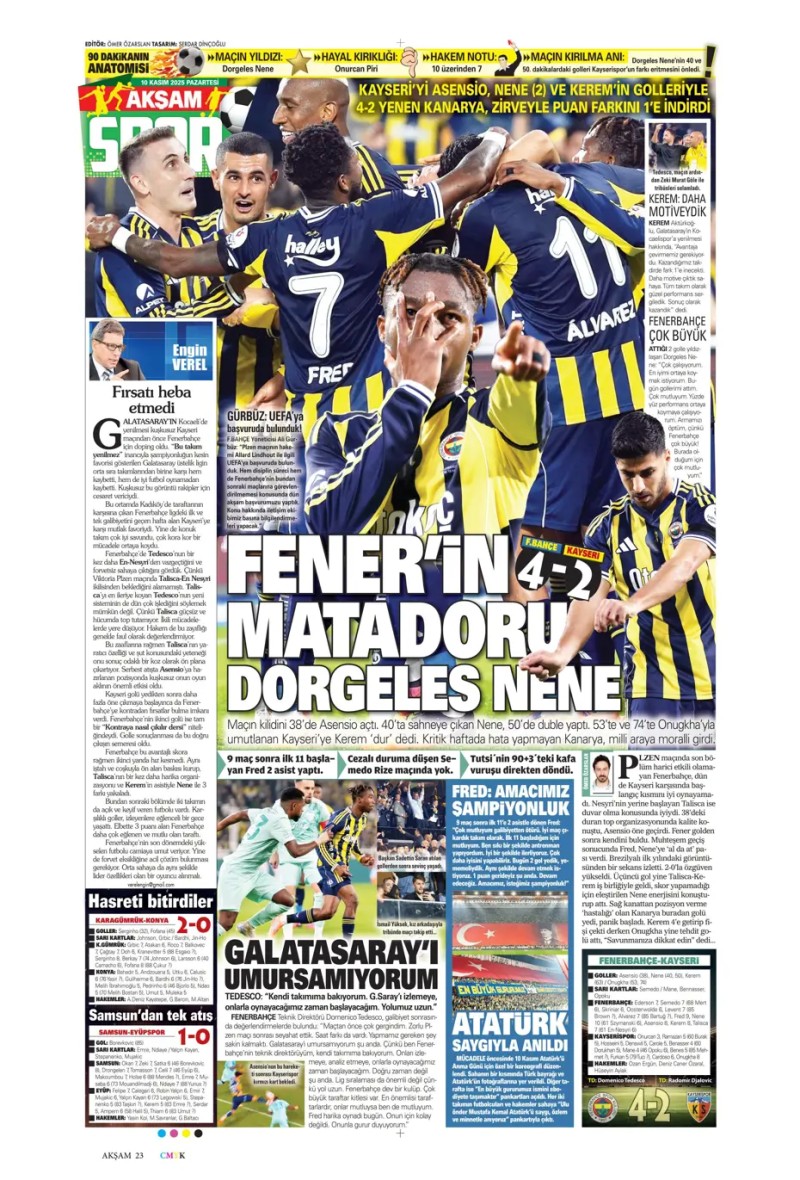 Bugün gazetelerde öne çıkan tüm FENERBAHÇE manşetlerine hızlıca göz atabilirsiniz! FENERBAHÇE manşetleri (10 Kasım 2025)