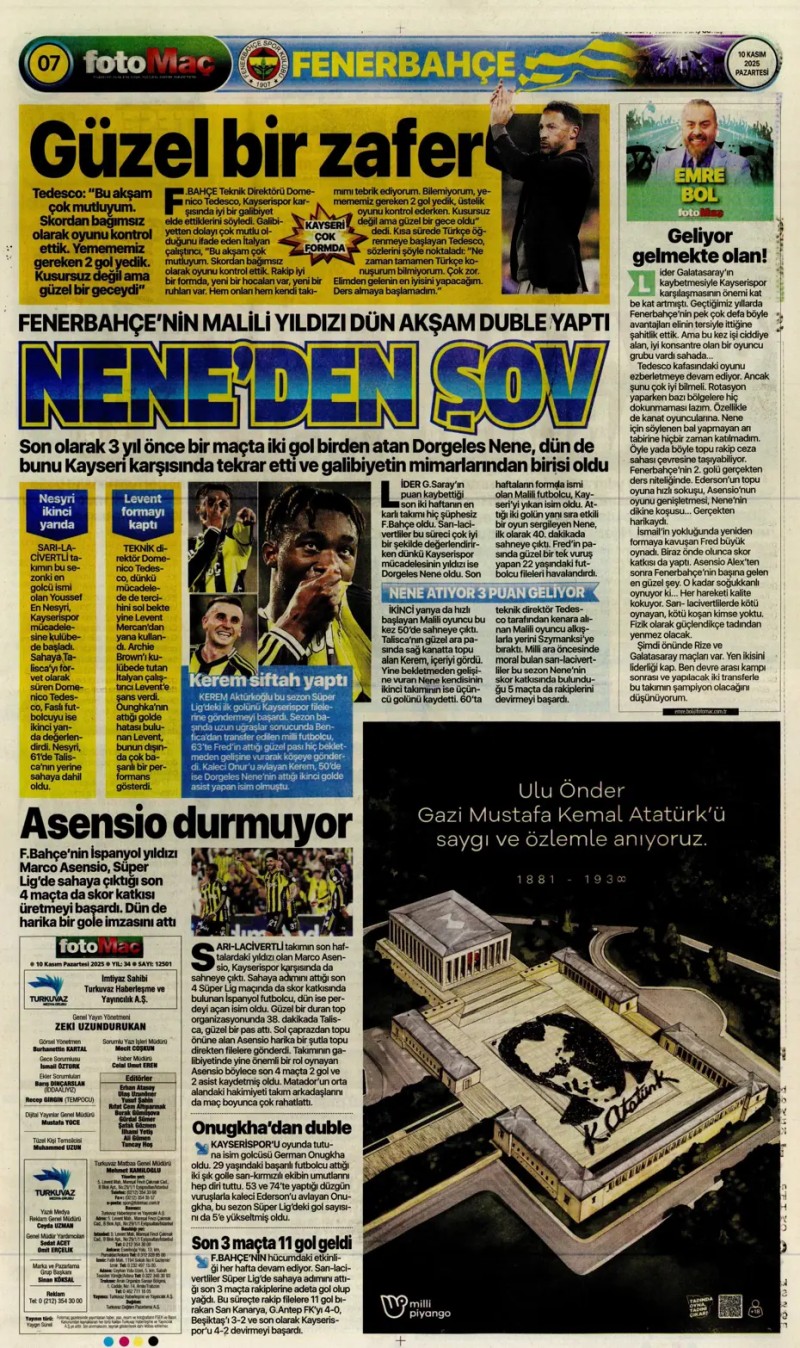 10 Kasım 2025 – Gazetelerde FENERBAHÇE