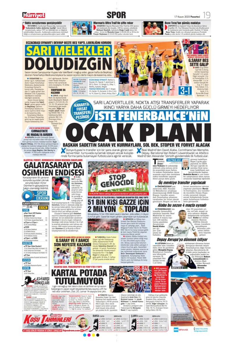 17 Kasım 2025 – Gazetelerde FENERBAHÇE