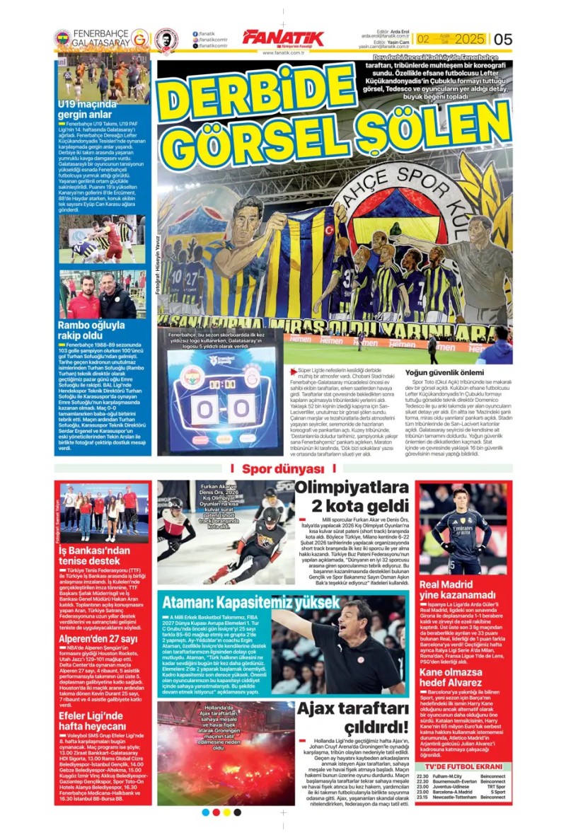 2 Aralık 2025 – Gazetelerde FENERBAHÇE
