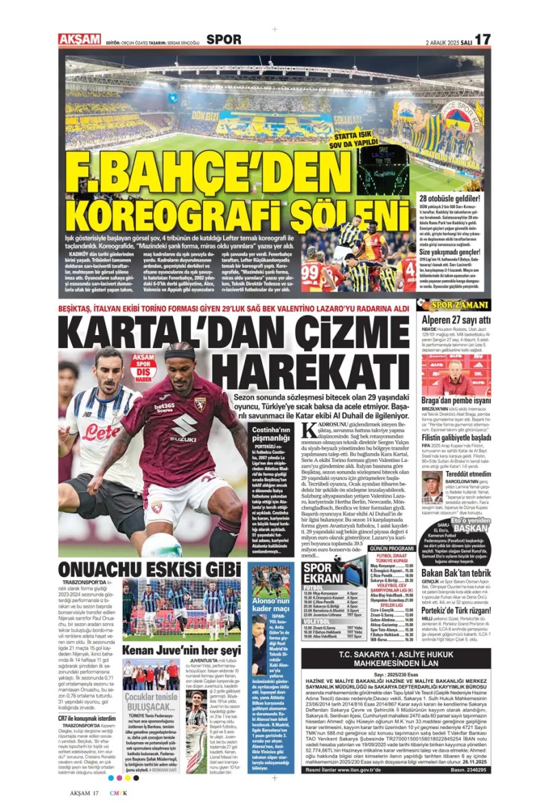 2 Aralık 2025 – Gazetelerde FENERBAHÇE