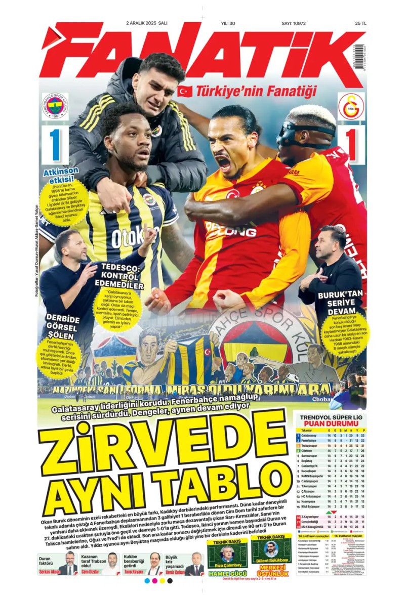 2 Aralık 2025 – Gazetelerde FENERBAHÇE