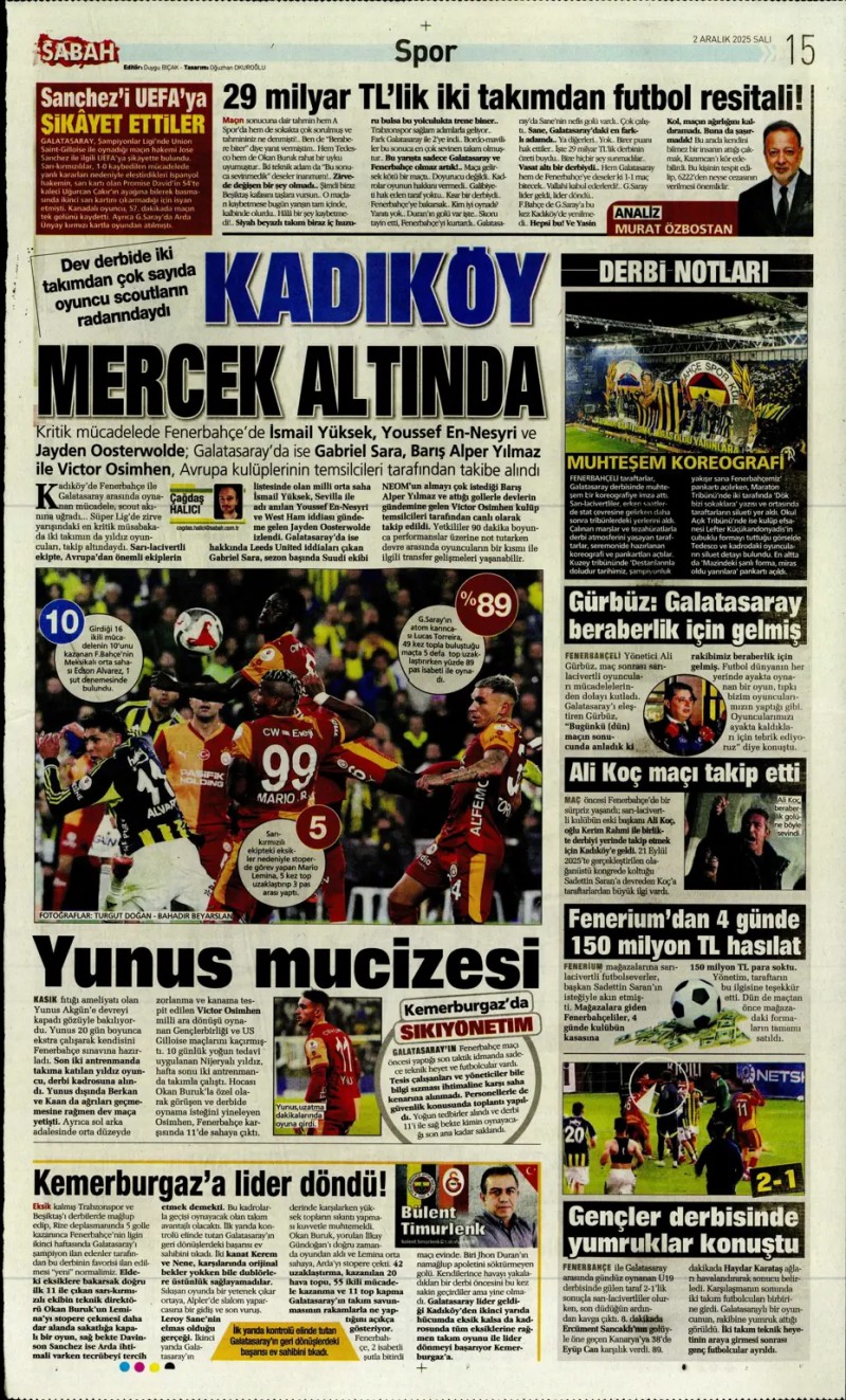 2 Aralık 2025 – Gazetelerde FENERBAHÇE