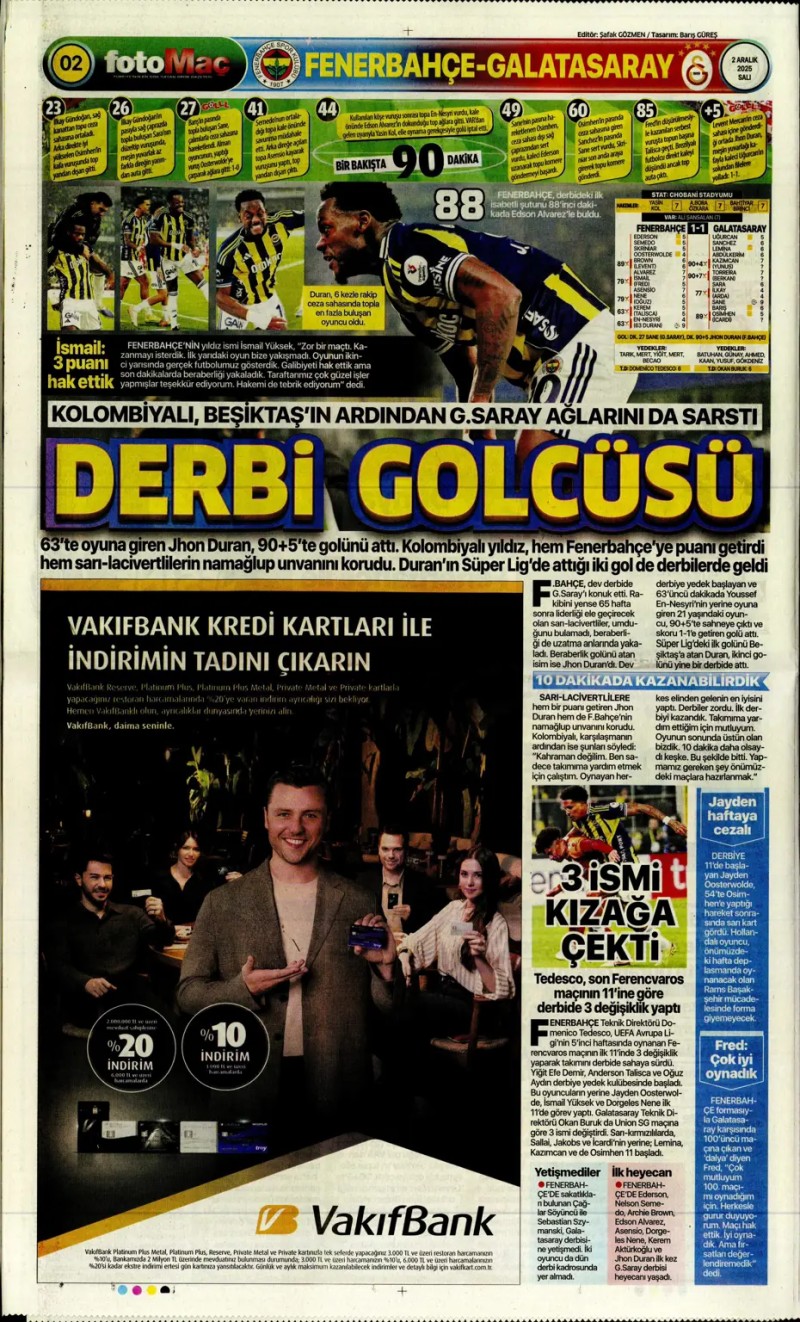 2 Aralık 2025 – Gazetelerde FENERBAHÇE