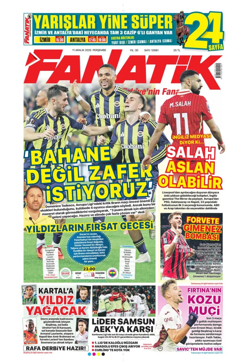 11 Aralık 2025 – Gazetelerde FENERBAHÇE