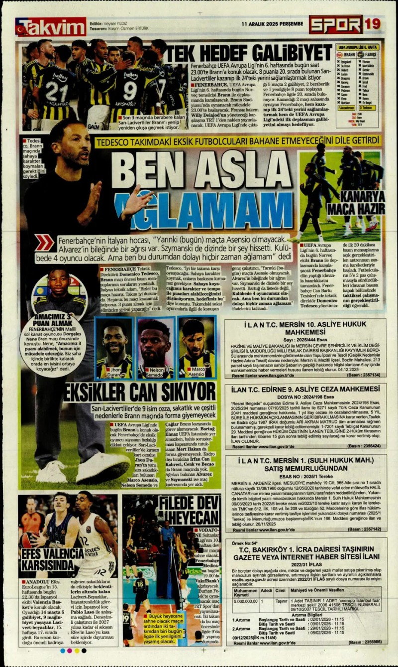11 Aralık 2025 – Gazetelerde FENERBAHÇE