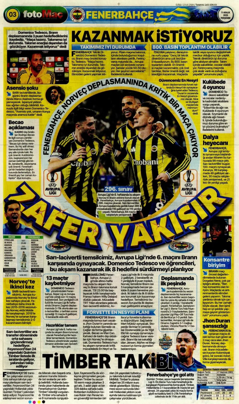 11 Aralık 2025 – Gazetelerde FENERBAHÇE