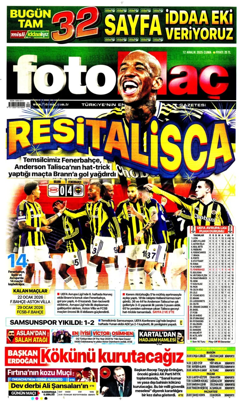 12 Aralık 2025 – Gazetelerde FENERBAHÇE