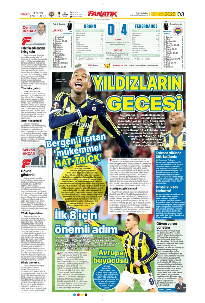 12 Aralık 2025 – Gazetelerde FENERBAHÇE