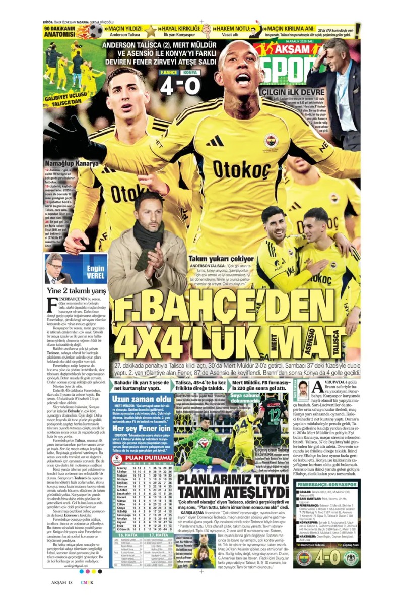 16 Aralık 2025 – Gazetelerde FENERBAHÇE