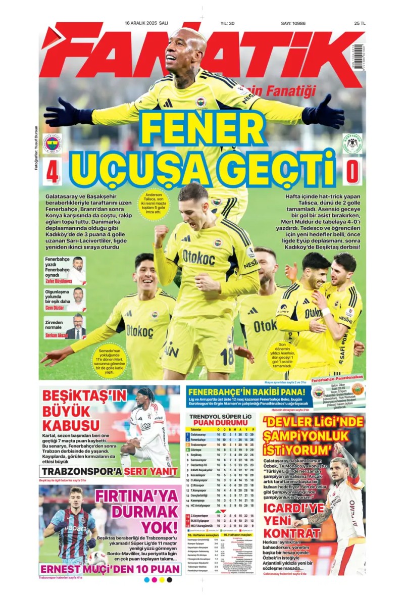 16 Aralık 2025 – Gazetelerde FENERBAHÇE