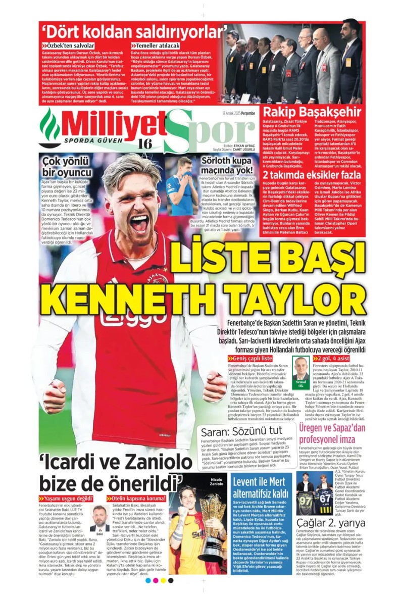 18 Aralık 2025 – Gazetelerde FENERBAHÇE
