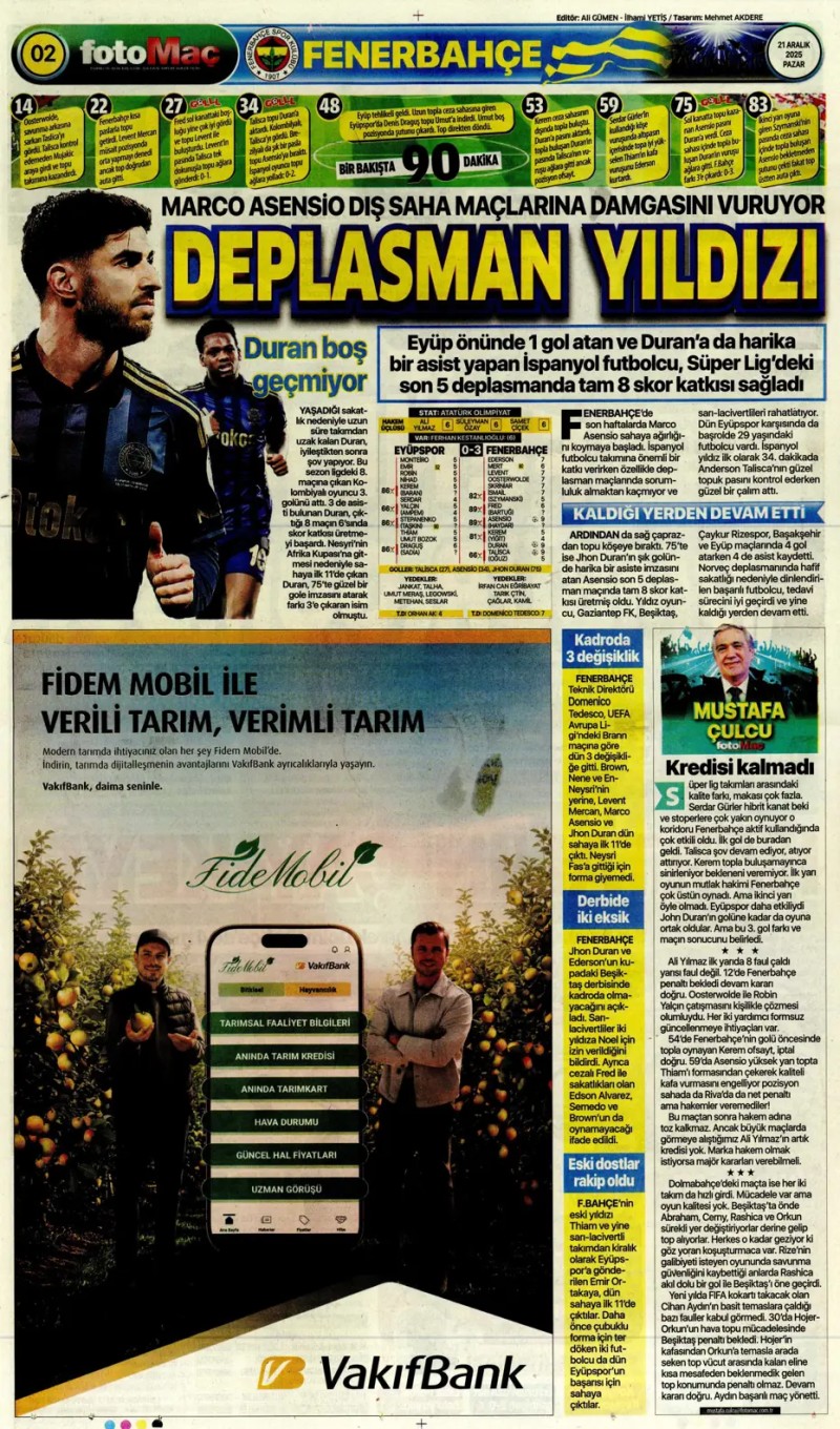 21 Aralık 2025 – Gazetelerde FENERBAHÇE