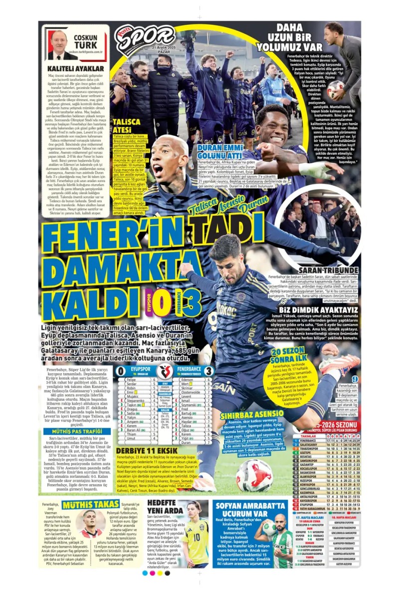 21 Aralık 2025 – Gazetelerde FENERBAHÇE