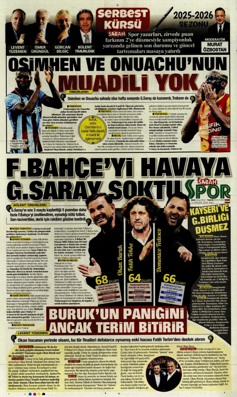 14 Nisan 2026 – Gazetelerde FENERBAHÇE